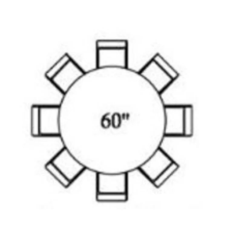 Dimensions: 60"(5ft) Round Top x 30"H Seats: 8