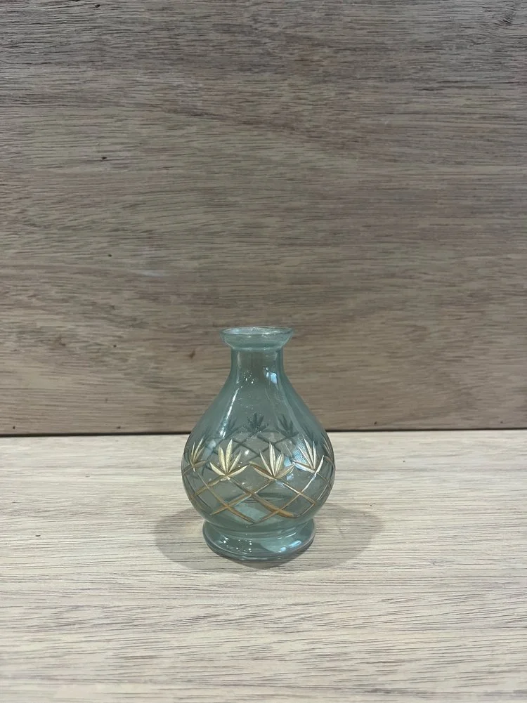 Green and Gold Glass Bud Vase