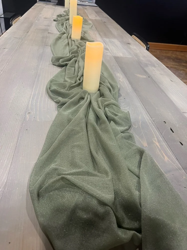 Olive Green Shimmer Table Runner 29.5” x 118”