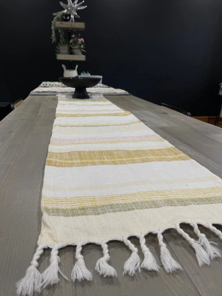 Cream, Pink and Green Stripe Table Runner 13.5” x 62.5”