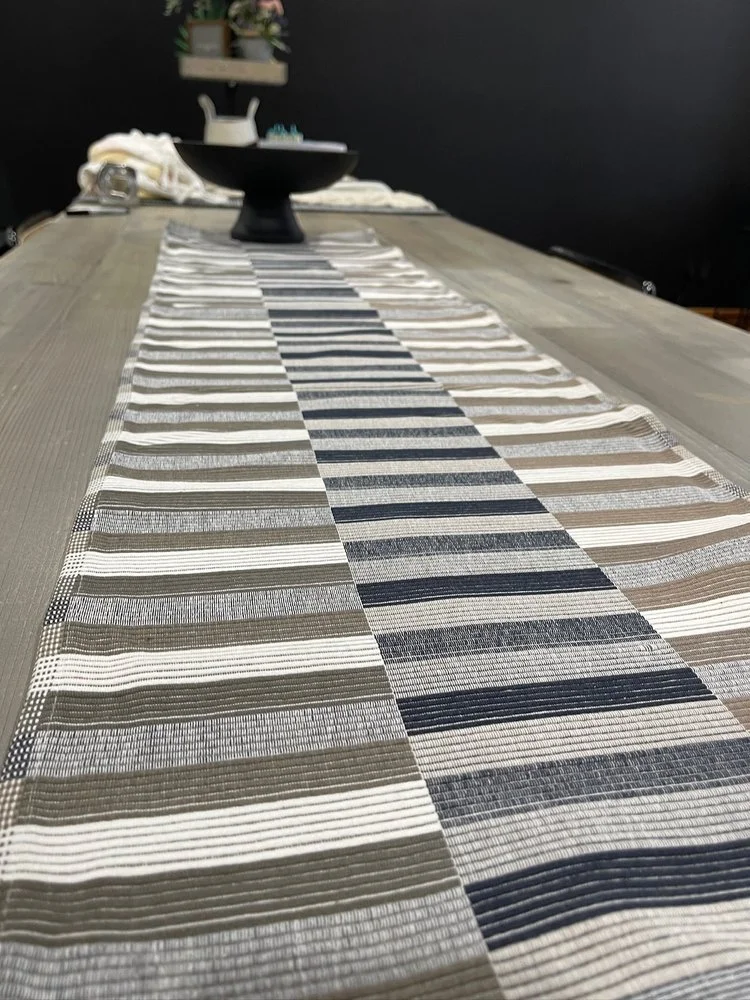 Grey, Black, and White Table Runner, 14” x 52.5”