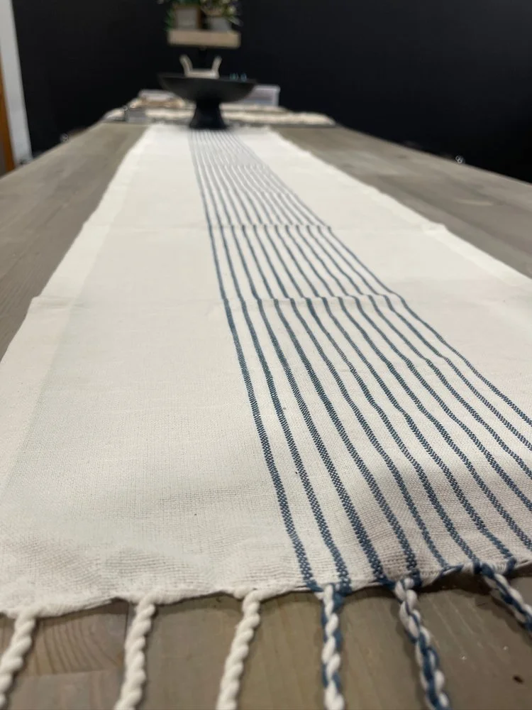 White and Blue Strip Table Runner 15” x 71”